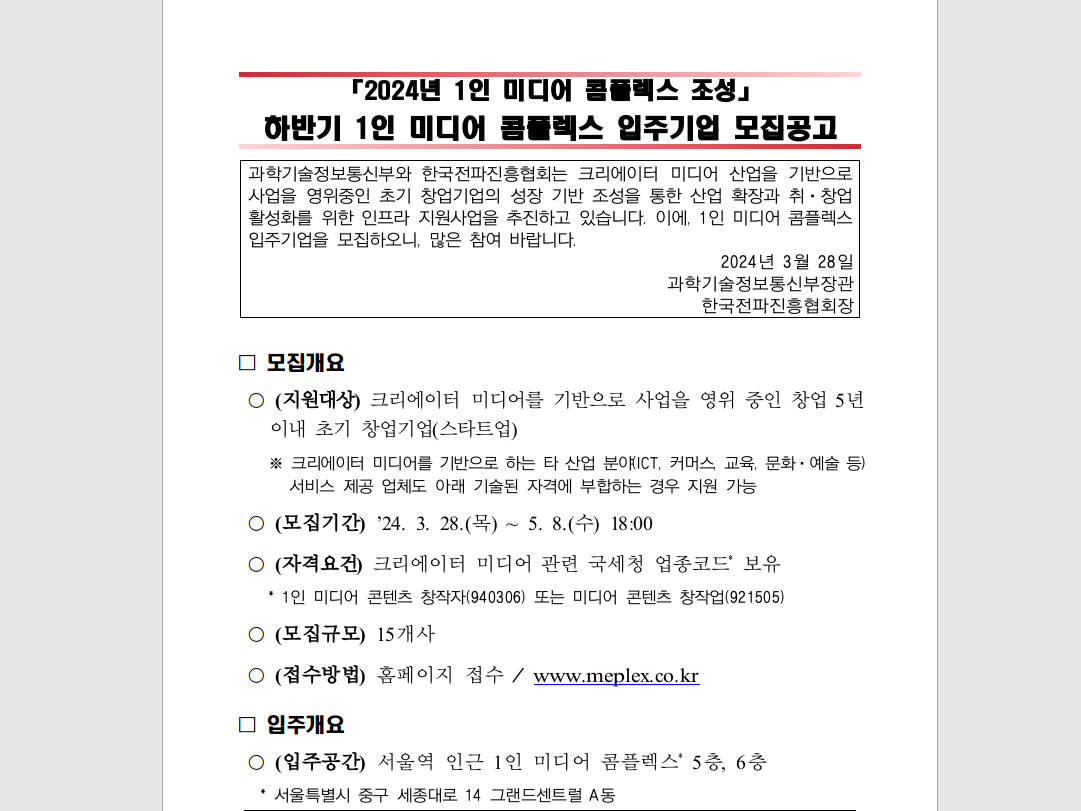 사업: 2024년 1인 미디어 콤플렉스 입주기업 선정 심사
